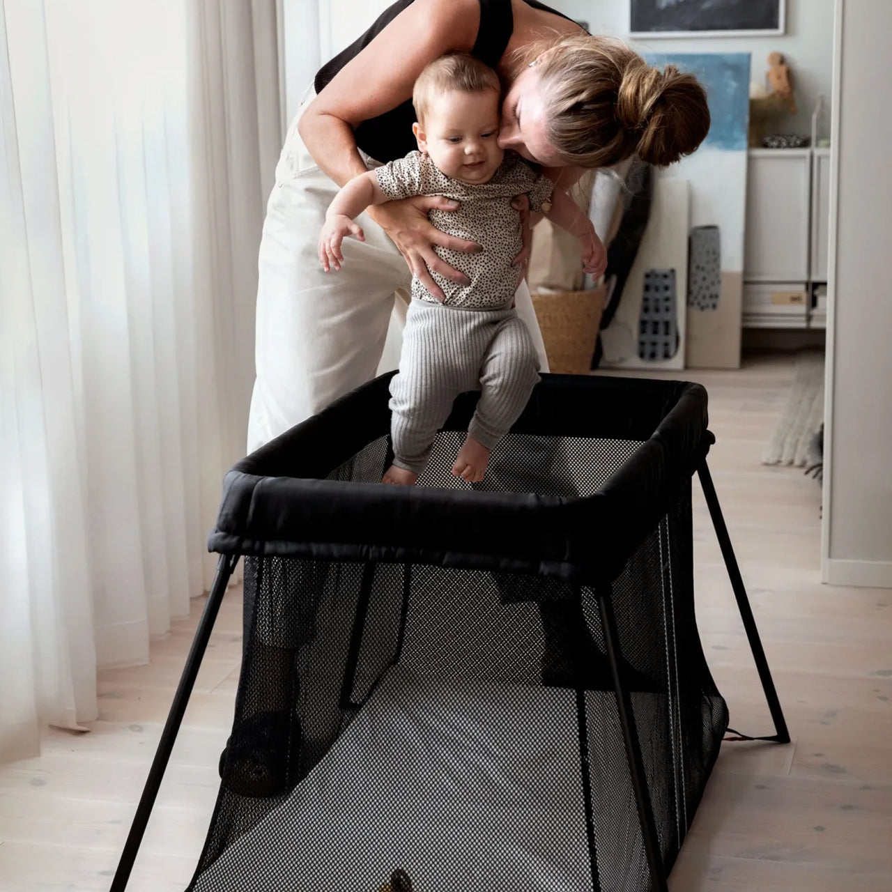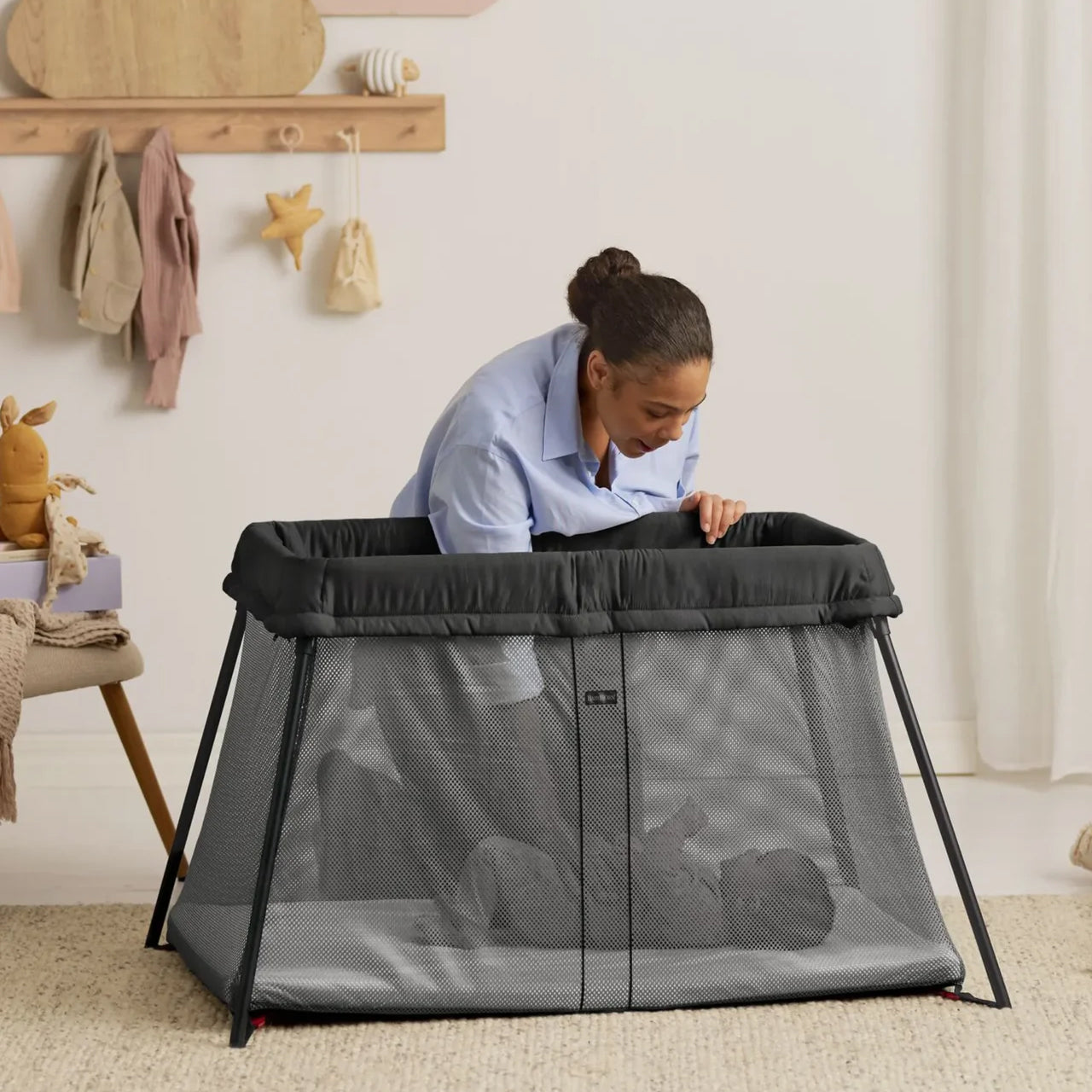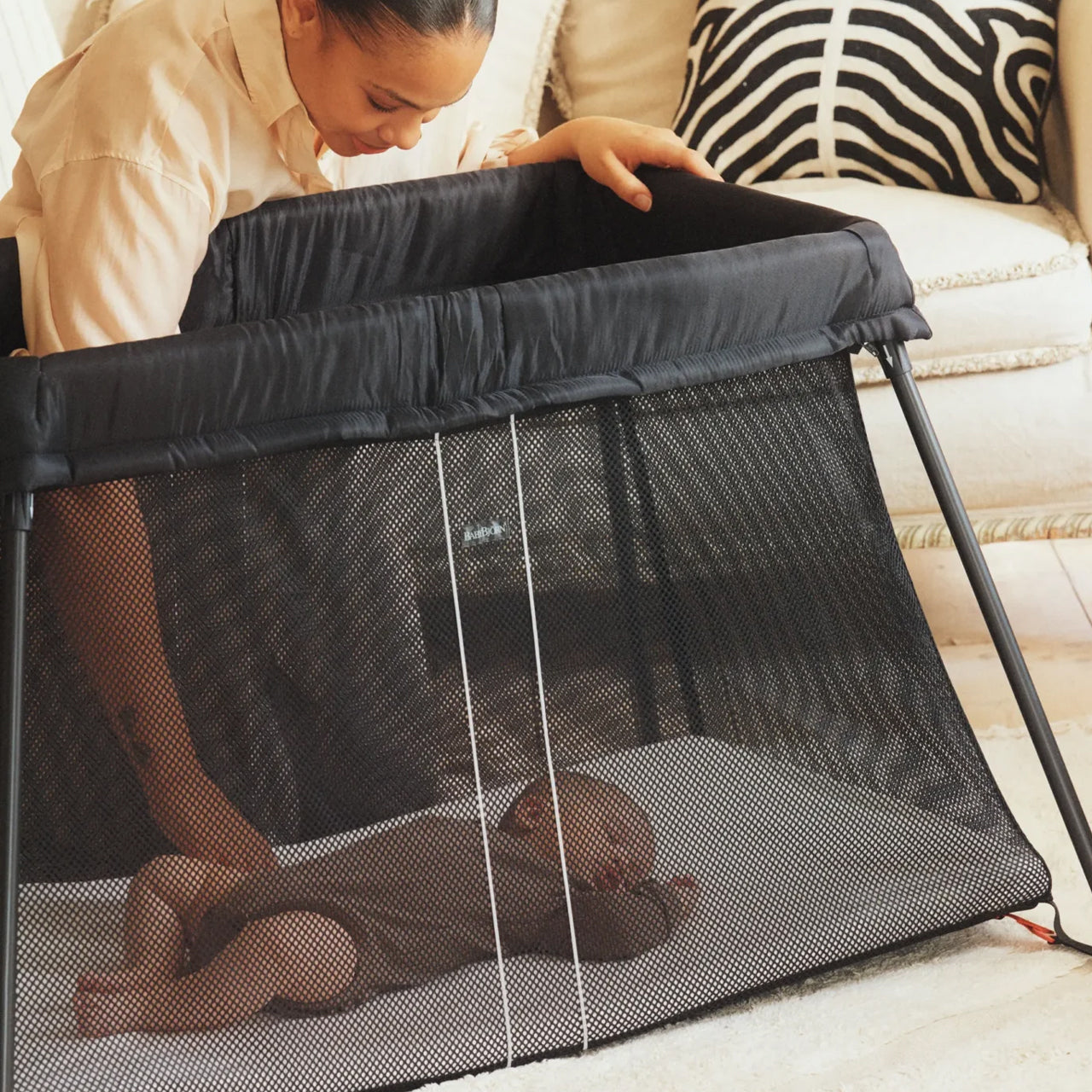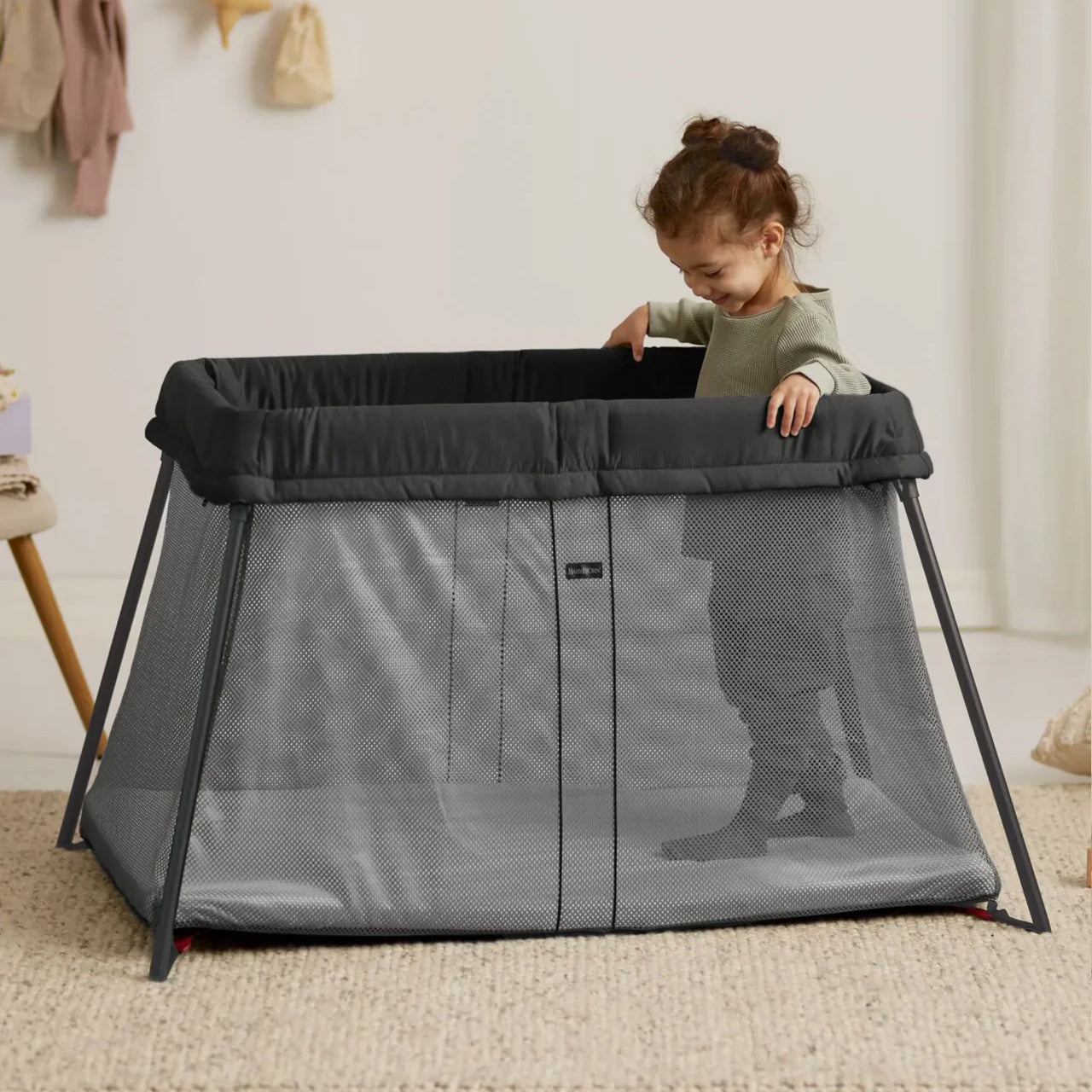 柔らかく風通りの良いメッシュ生地の側面だから、プレイヤードの中は快適。 赤ちゃんの顔が近づいた時でも、呼吸を妨げることがありません。
