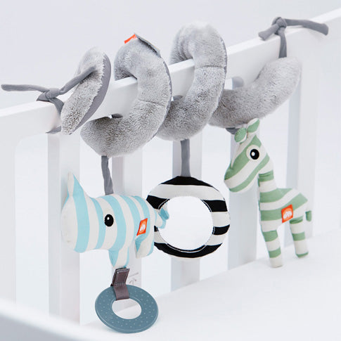 ベッドやカーシート、ベビーカーなどにつけられます。