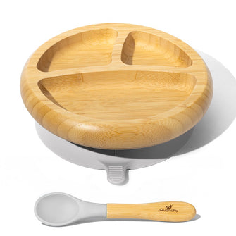 素材 | 皿・スプーン持ち手:竹集成材(食用ウレタン塗装) 吸盤・スプーン先端:シリコーン |