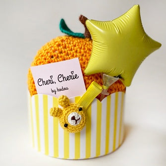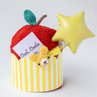 素材 | kodou クロシェット帽(フルーツモチーフ) kodou ニットバニー おむつ(パンパースMサイズテープ式)2枚 バルーン |