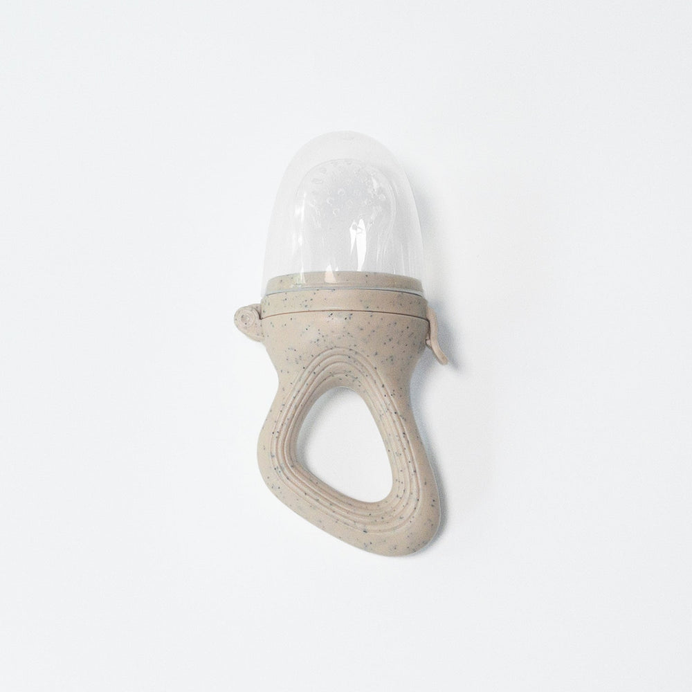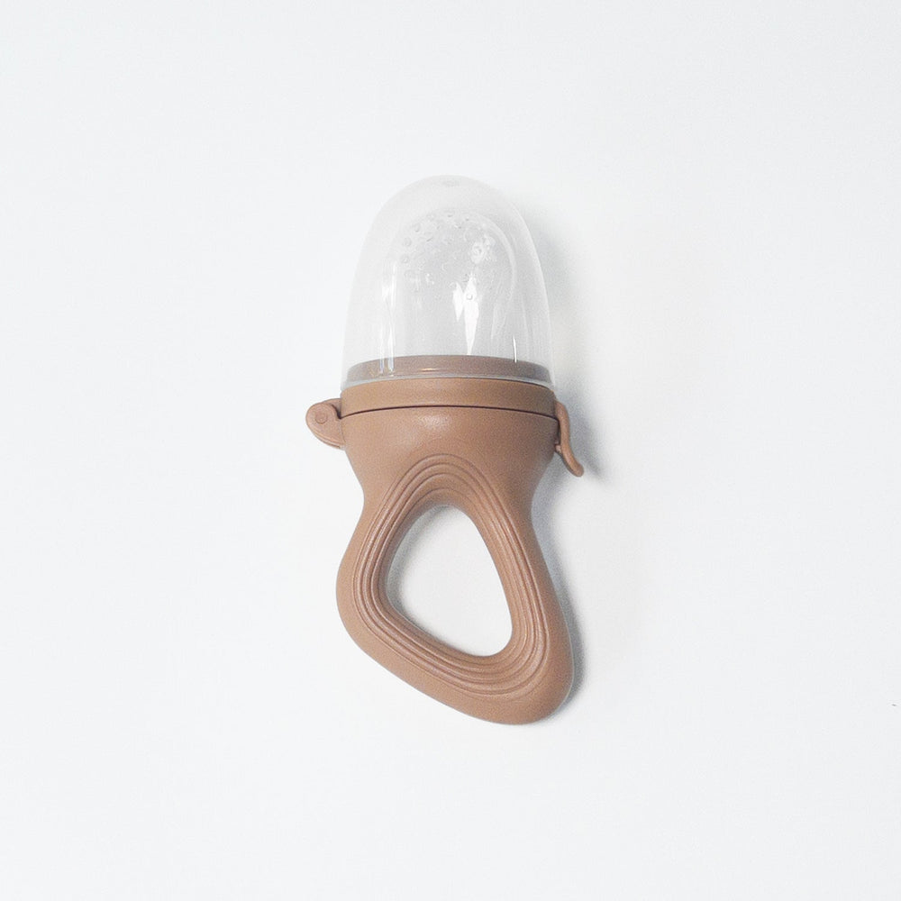 柔らかいシリコンの吸い口の中に、細かく切った果物や野菜を入れ、噛むことで小さな穴から出てくる果汁や果実を食べることができます。
