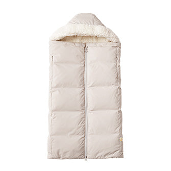 ファスナーで開閉できるアームホールや、赤ちゃんの足が飛び出さないようにスナップボタンで簡単に開閉できる裾、撥水生地を採用など、機能性を追求したベビーカバー。