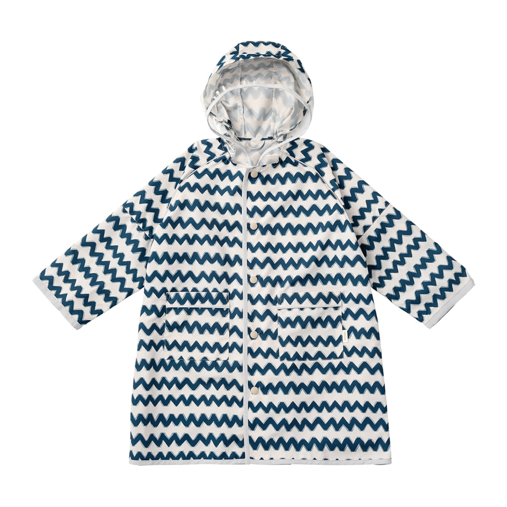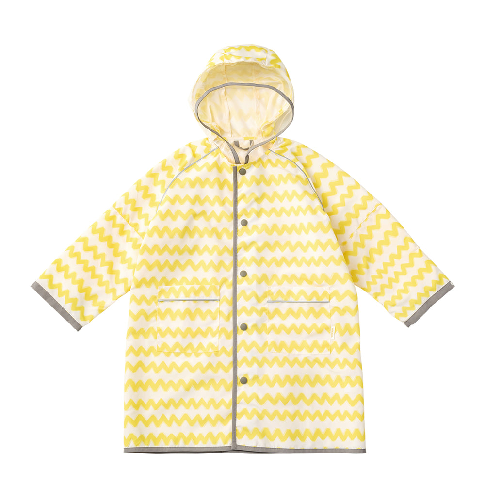 雨に濡れた町や雨音を楽しみながら、いつもの道をスキップ。子どもたちの弾む気持ちを応援する機能性たっぷりのレインコートです。