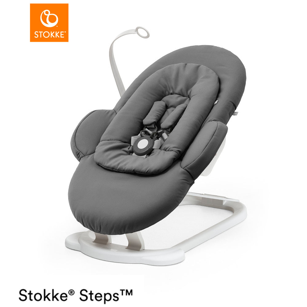 ストッケ ステップス チェアにストッケ ステップス バウンサーを取り付けると、お誕生後すぐのお子さまも一緒にテーブルにつき、家族みんなでテーブルを囲んで愛情を育むことができます。