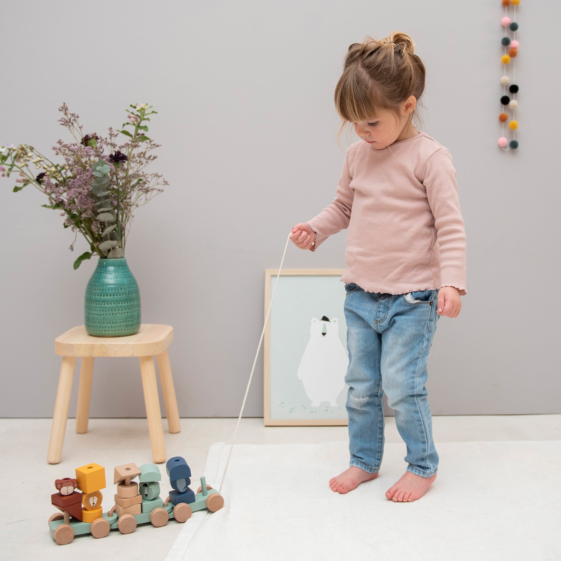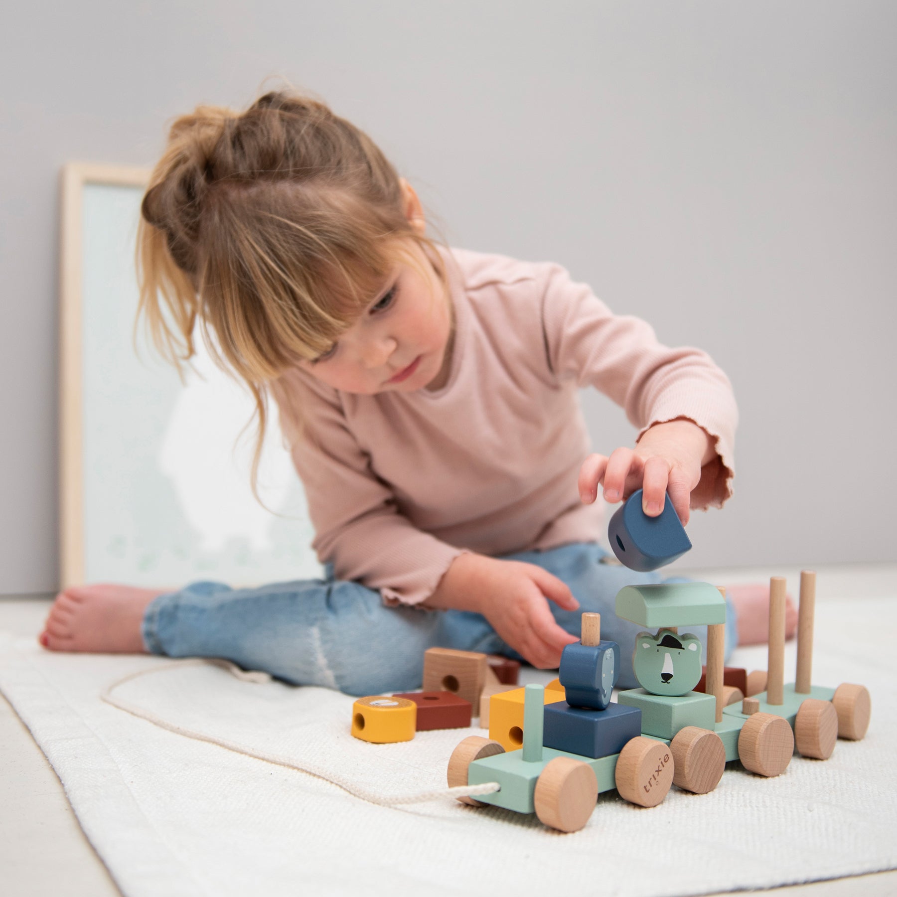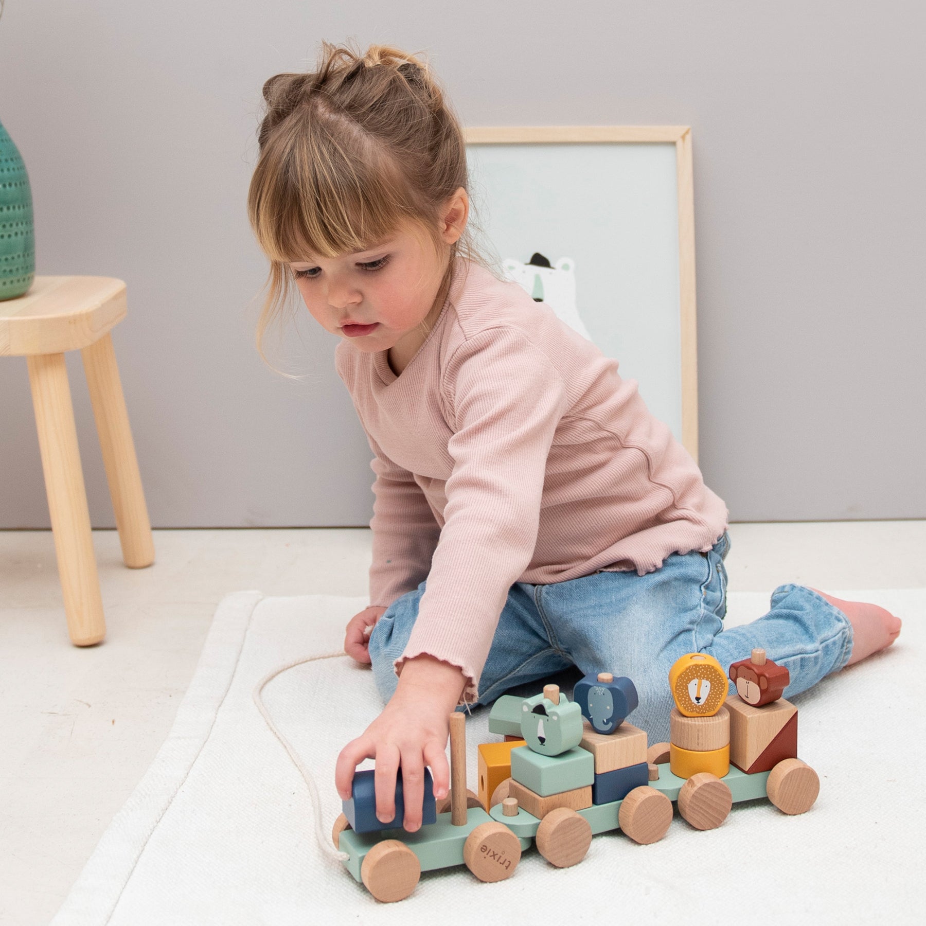 ベルギー発、カラフルでユニークなデザインが魅力のtrixie(トリクシー)の、トレインのおもちゃです。