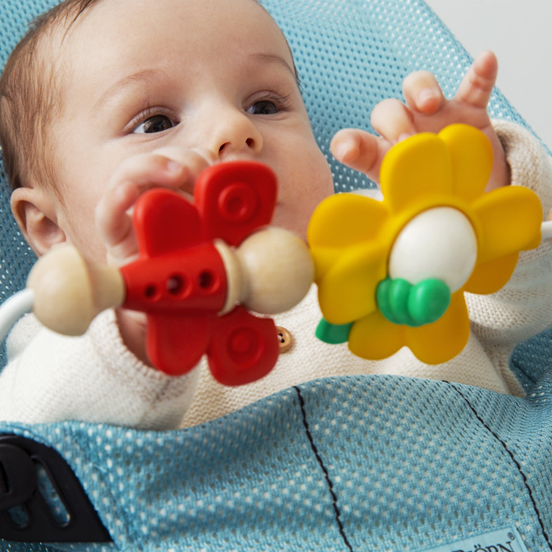 口に含んでも安全な素材のみで作られているから、赤ちゃんがなめても安心。