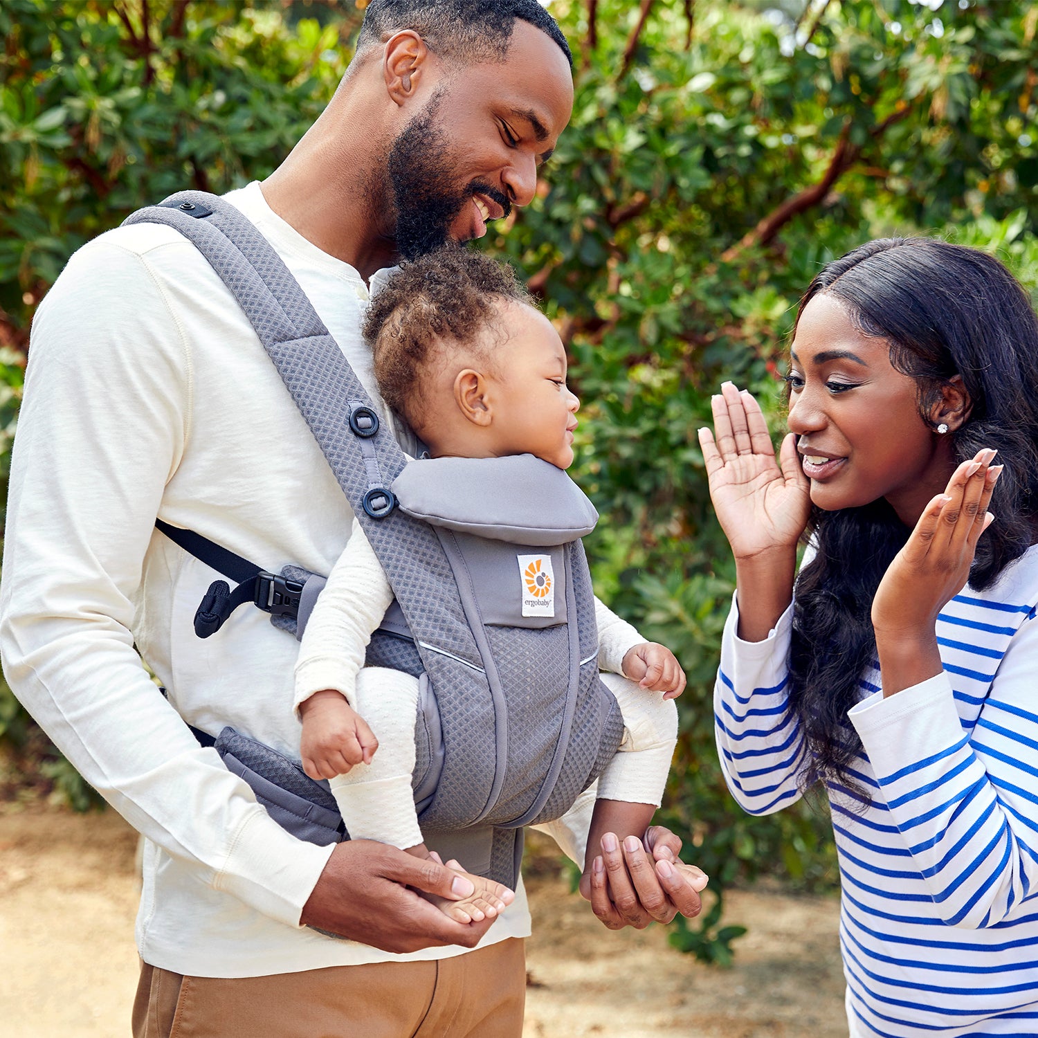 パパとママの顔も、周りの景色も見渡せる欲張りポジションは、好奇心が旺盛になってきた赤ちゃんにおすすめです。