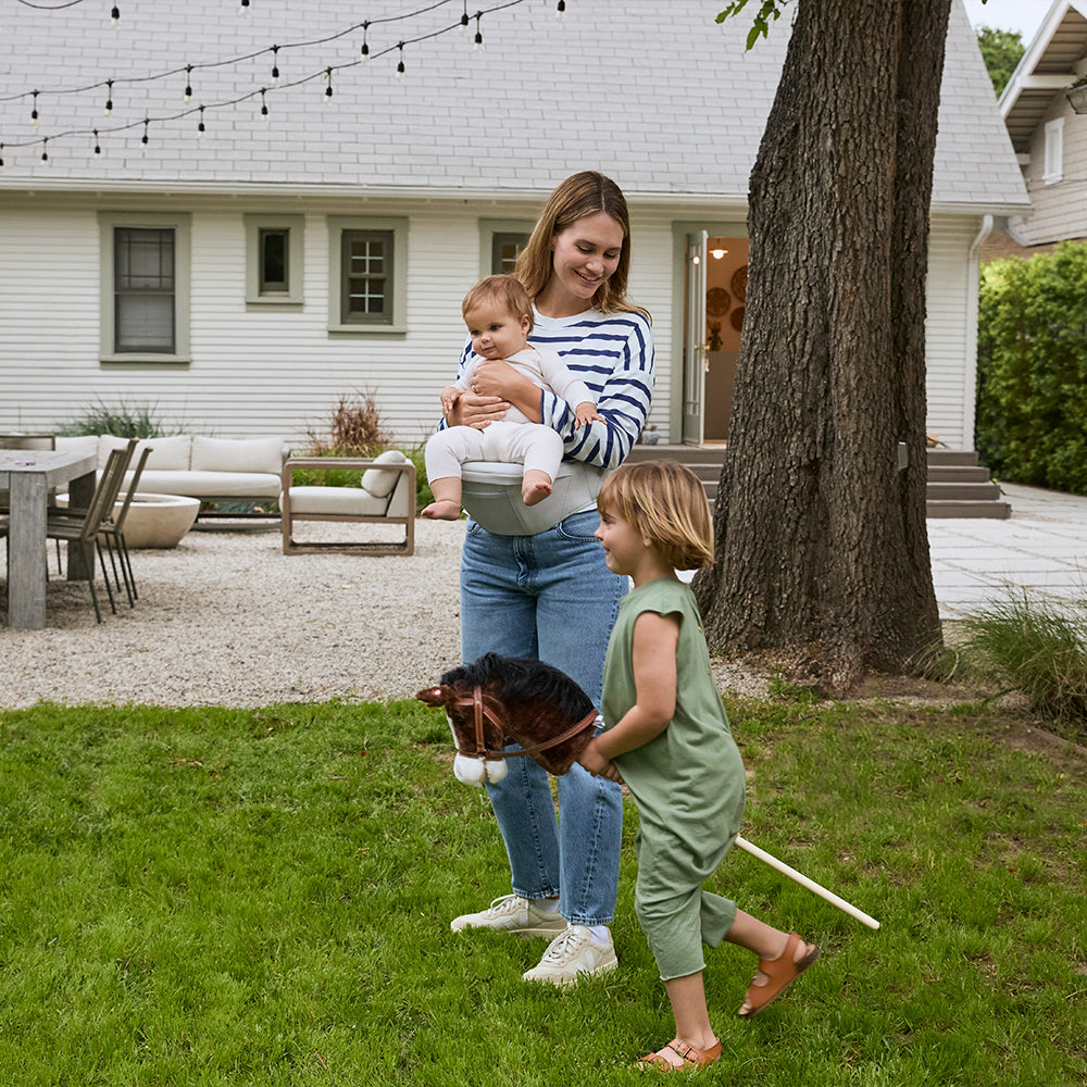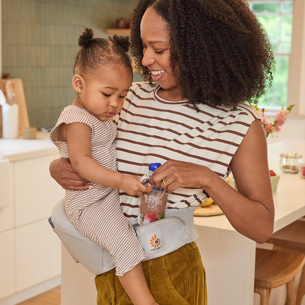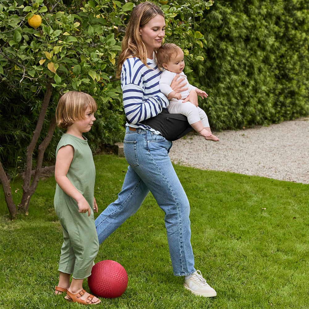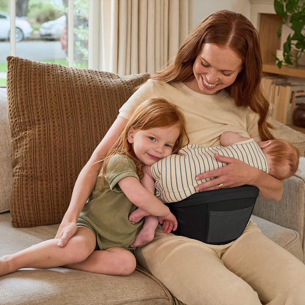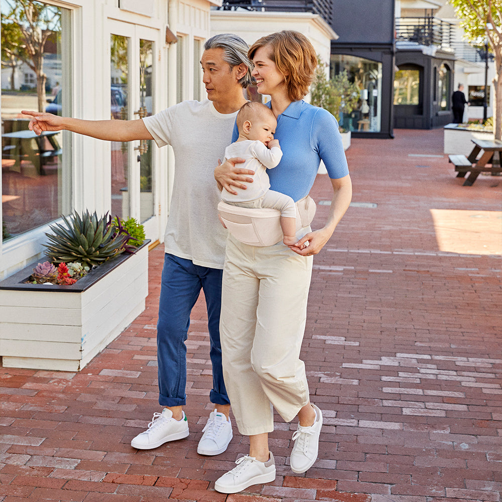クッション入りの幅広ウエストベルトは、パパママへの体への負担も軽減。