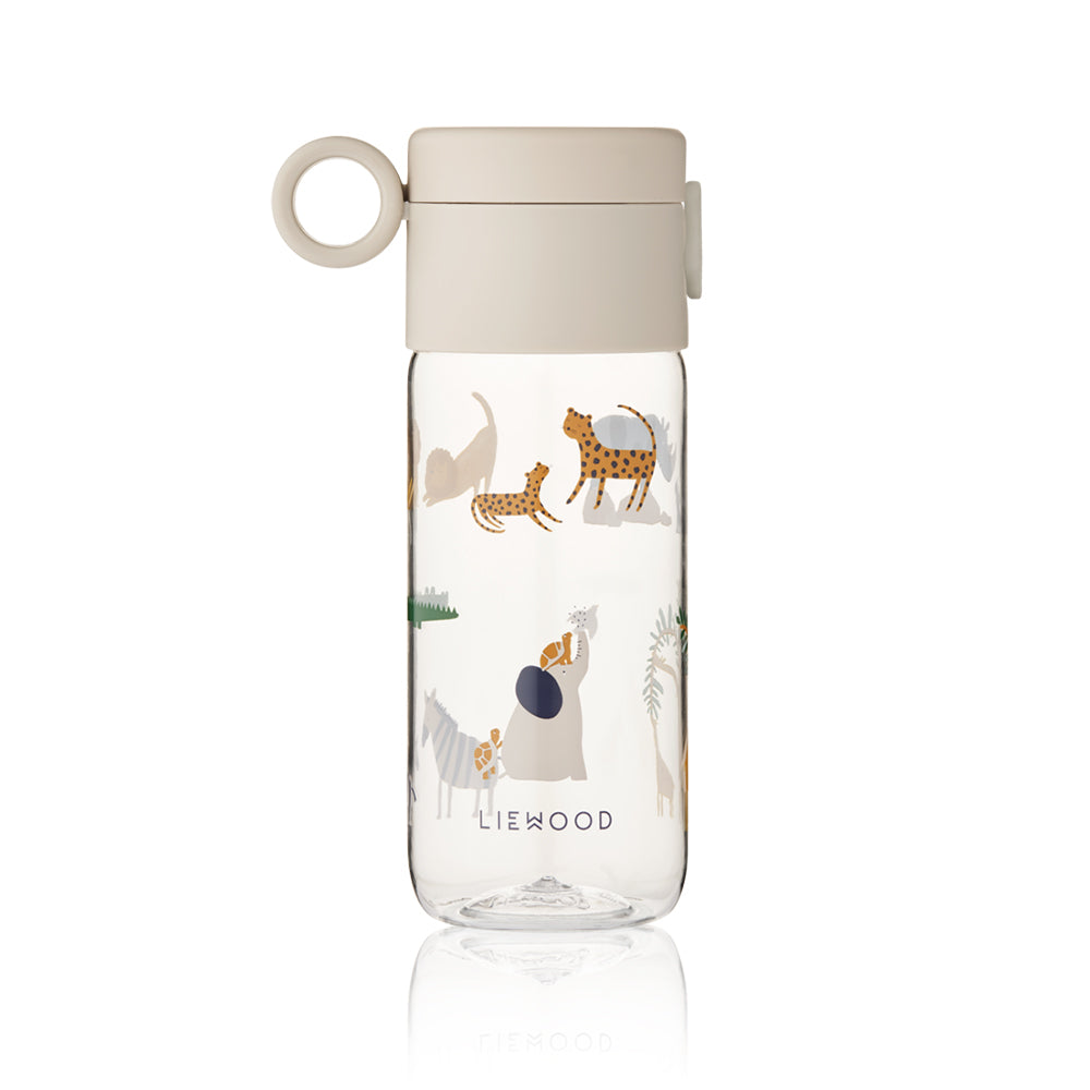 動物や桃の実プリントとニュアンスカラーがおしゃれな透明ウォーターボトル。