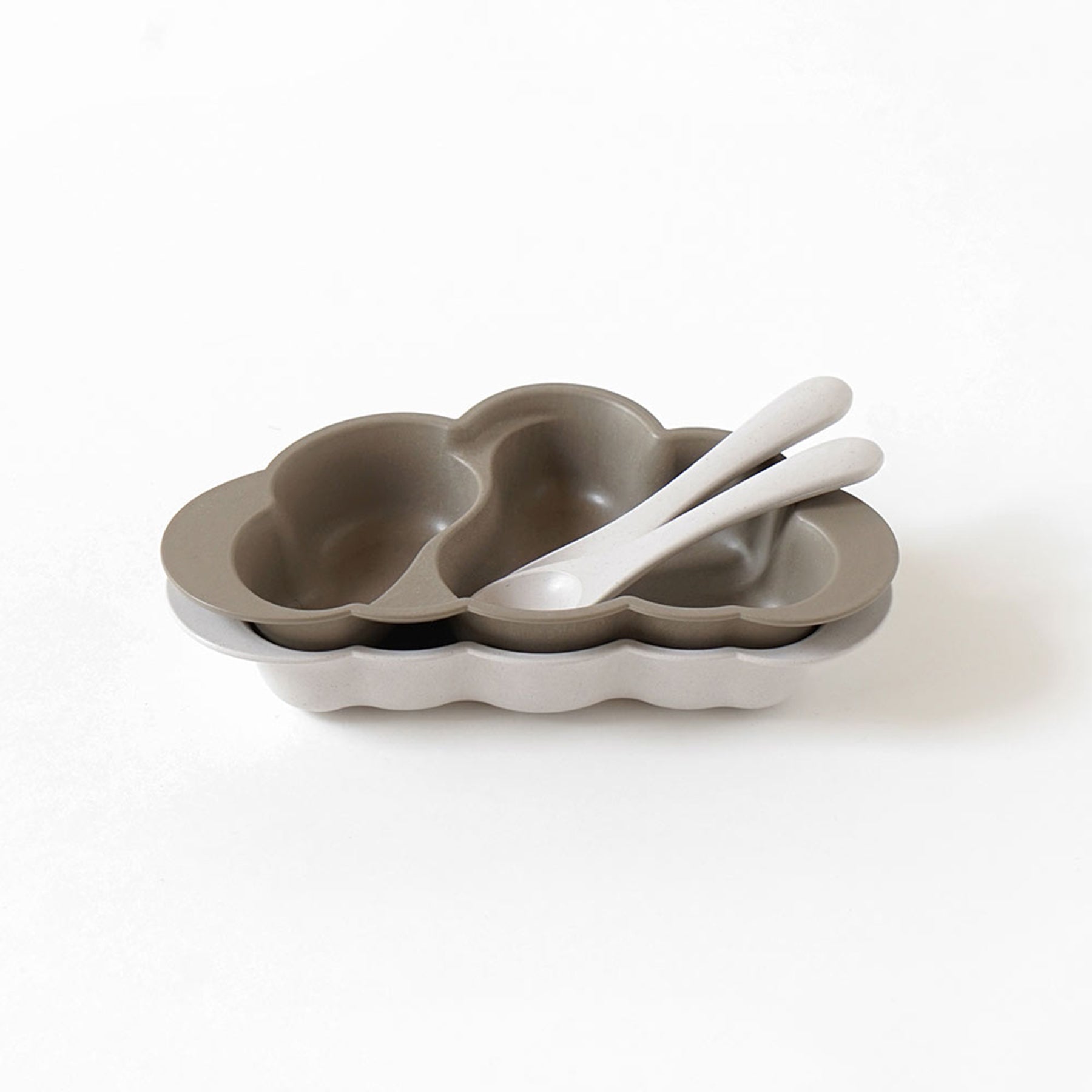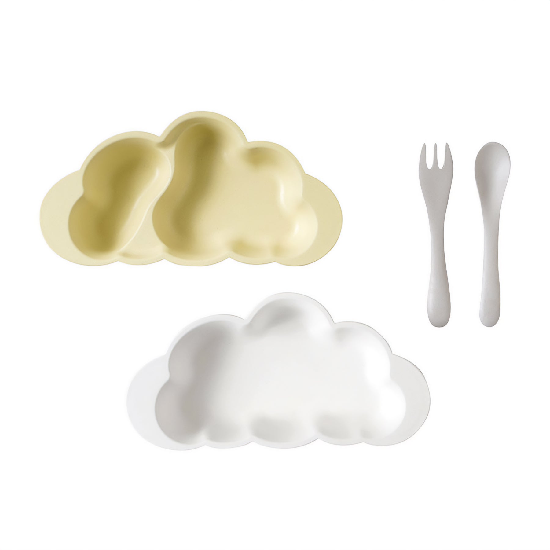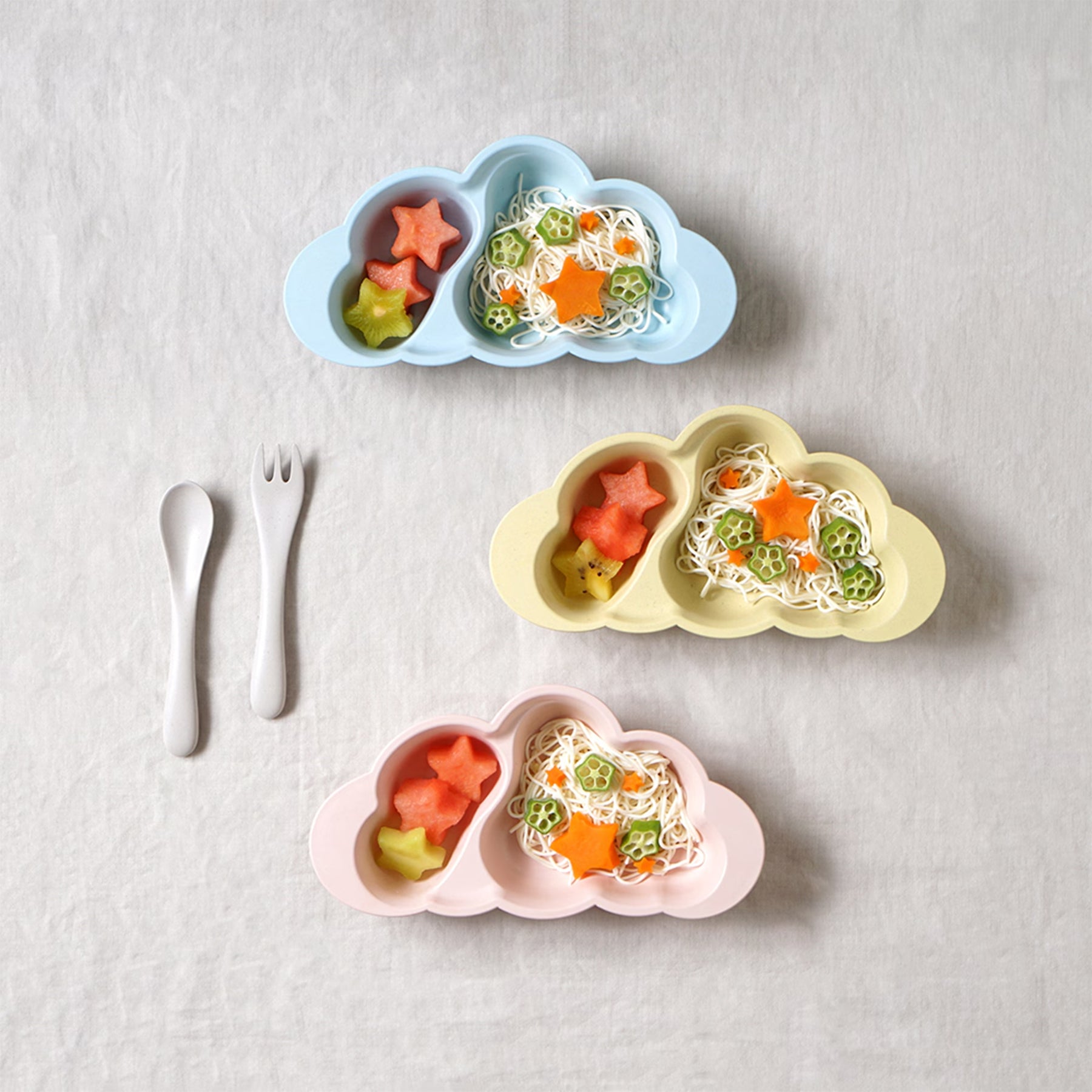 「仕切りあり」と「仕切りなし」のお皿が2枚にカトラリーがセットになっているので、お子様の月齢や食欲に合わせて、離乳食〜キッズのおやつ皿まで長くお使いいただけます。