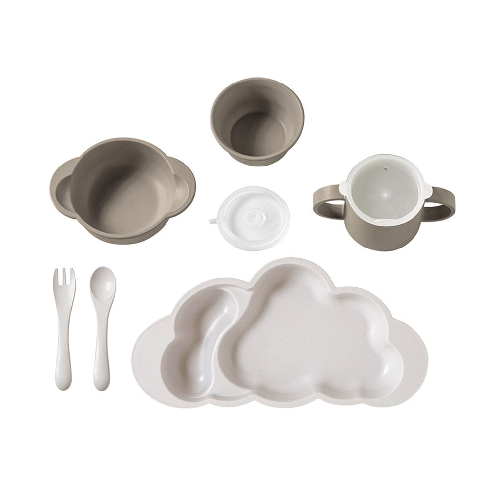 | サイズ | くもプレートgrande:横26.8 × 縦13.8 × 高さ3.5cm 70ml、200ml みみ付きスープわん:横13.9 × 縦10.7 × 高さ5cm 内容量:200ml おちゃわん:直径10 × 高さ5.2cm 内容量:200ml コップ:横12.9 × 縦7.2 × 高さ6.6cm(ふた無しの時) 内容量:180ml スープわん・おちゃわんストッパー:直径7 × 高さ1cm フォーク、スプーン:長さ12cm |