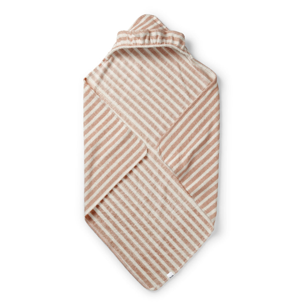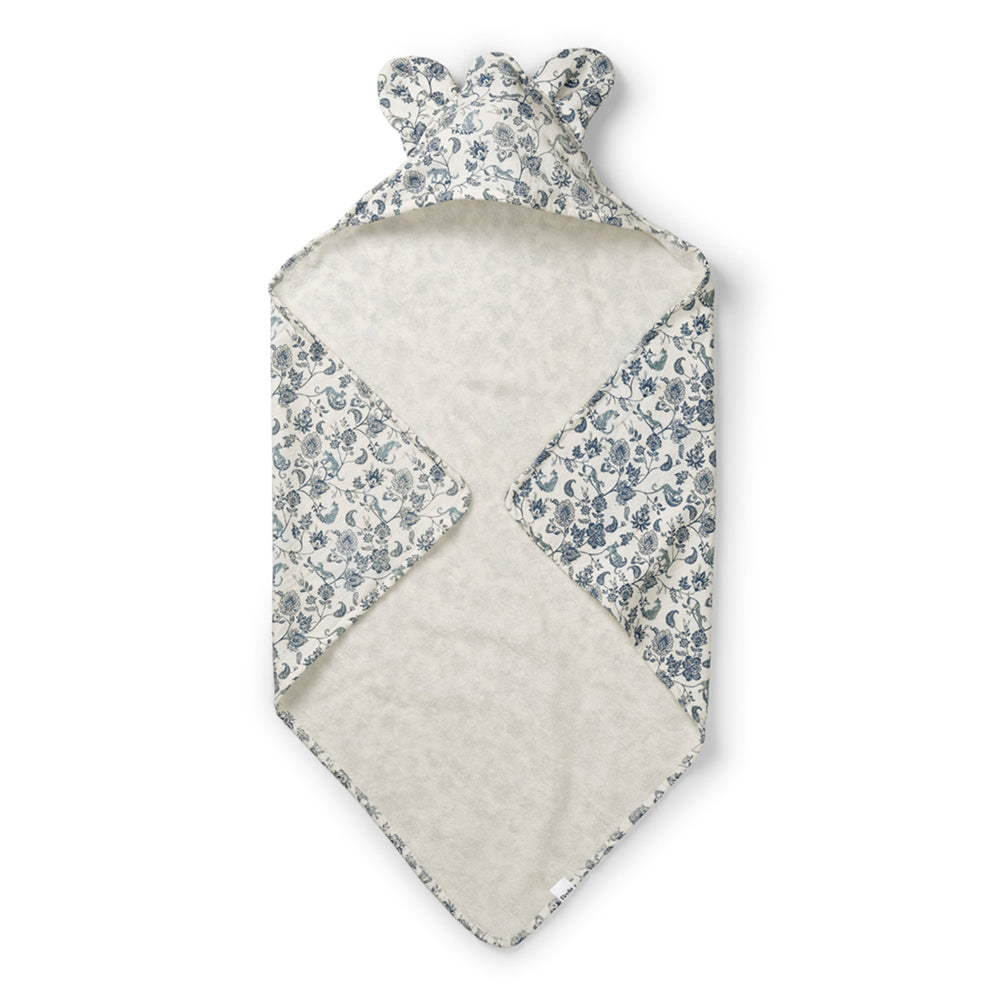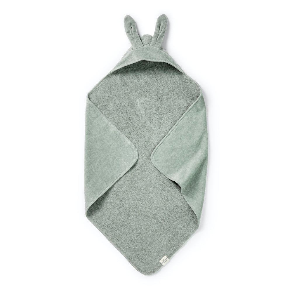 表地は毛足の短い滑らかなベルベット素材、裏側は吸水性に優れた高品質テリークロス(タオル地)で、裏表ともふわふわで滑らかな肌あたりでお風呂上がりの赤ちゃんを包みます。