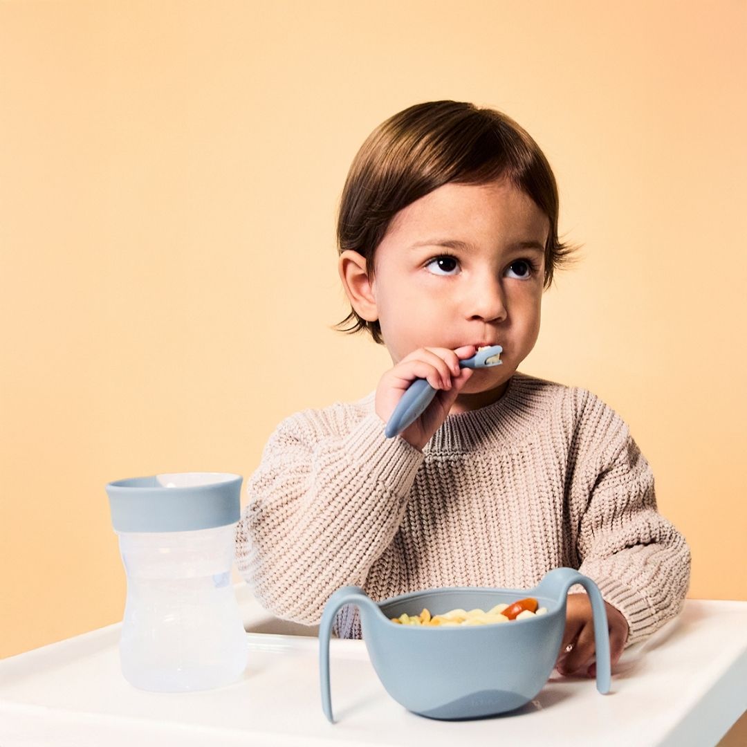 グー握りもしやすく、先端は口に運びやすい大きさなので、離乳初期のお食事の補助や、離乳食が進んで、赤ちゃん自身がはじめてカトラリーを持って食べる際にも使いやすいカトラリーセットです。