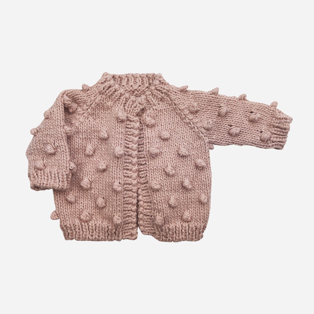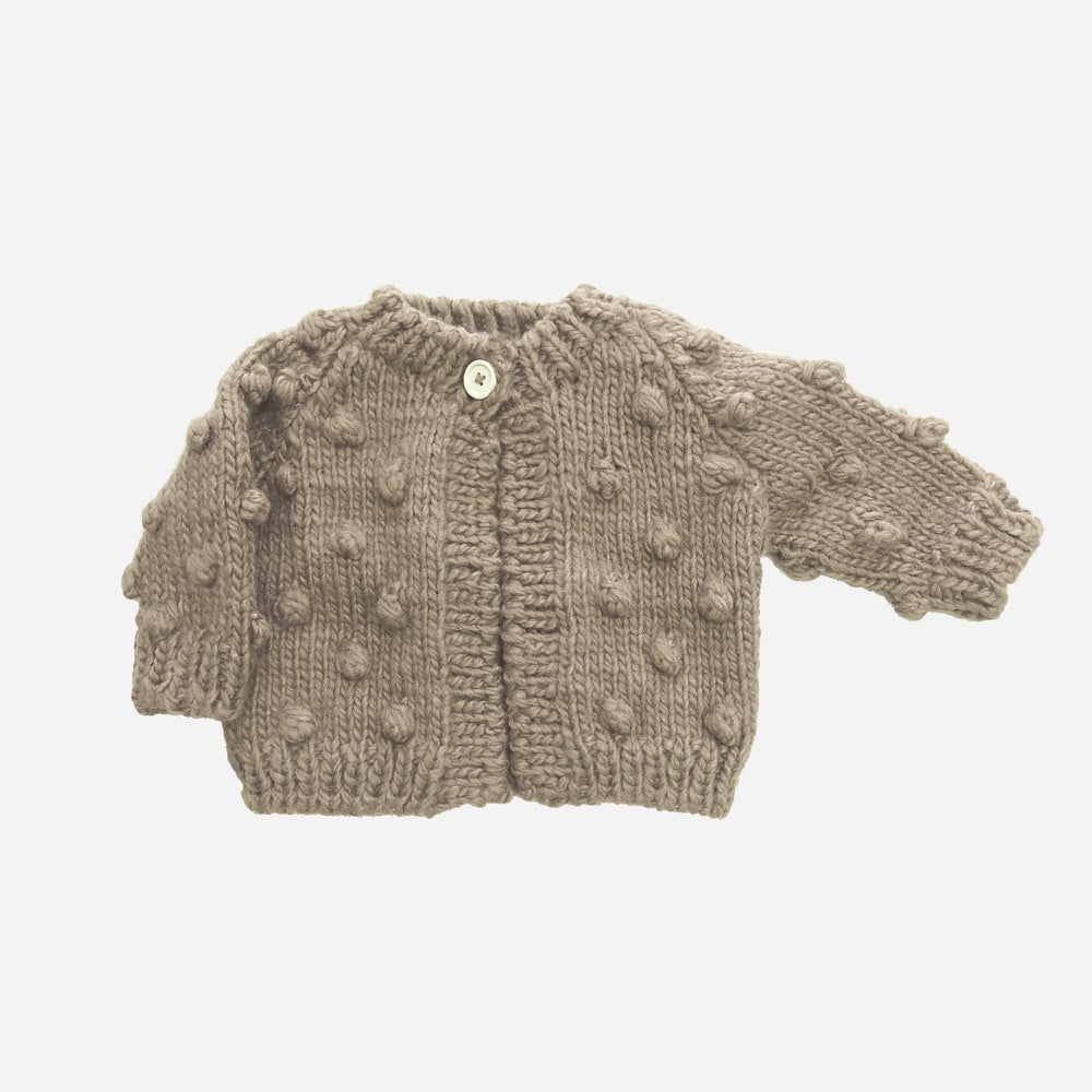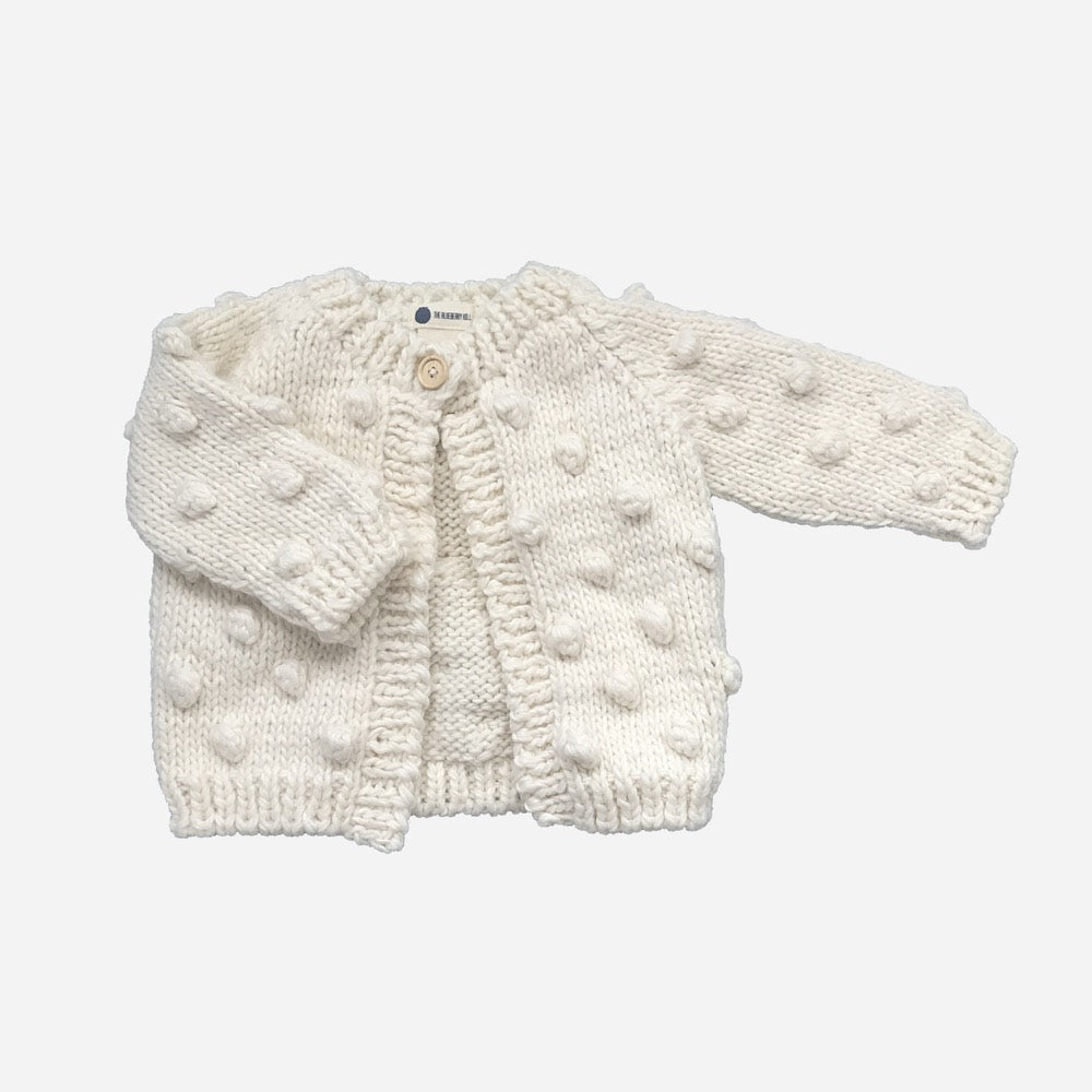 ポップコーンのようなかわいいボンボンがついたカーディガン。