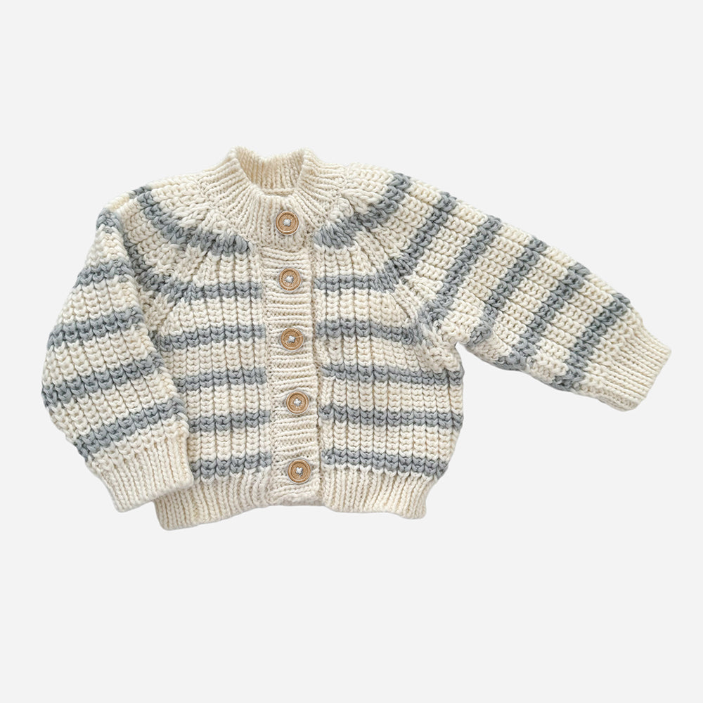 [ブルーベリーヒル] リブニットストライプカーディガン(Stripe Grey)