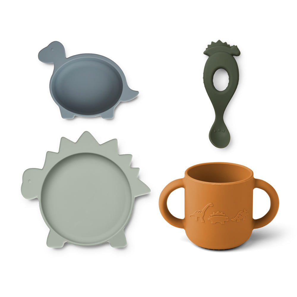 サイズ | Cat dark rose ボウル:幅 11.5 × 縦 11.5 × 高さ 4.5 cm (容量 300ml) プレート:幅 17 × 縦 17 × 高さ 2.5 cm コップ:幅 11.5 × 縦 6.5 × 高さ 7 cm (容量 160ml) スプーン:幅 4.5 × 長さ 13 × 高さ 2.5 cm Dino Blue ボウル:幅 17 × 縦 13 × 高さ 4.5 cm (容量 300ml) プレート:幅 23 × 縦 15.5 × 高さ 2.5 cm コップ:幅 11.5 × 縦 6.5 × 高さ 7 cm (容量 160ml) スプーン:幅 4.5 × 長さ 14 × 高さ 2.5 cm |
