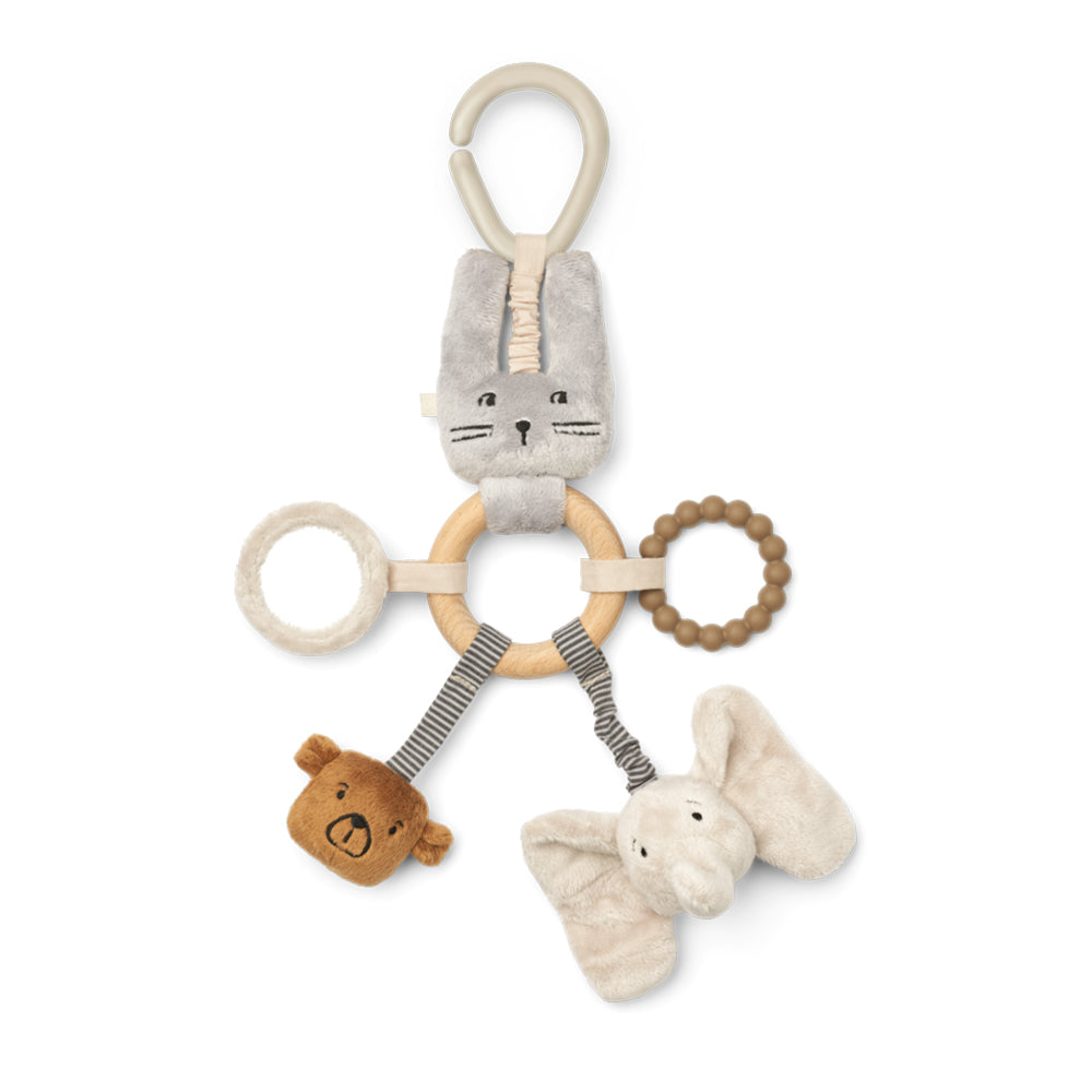 ウサギやゾウさんなどの動物さんデザインが可愛いアクティビティトイ。