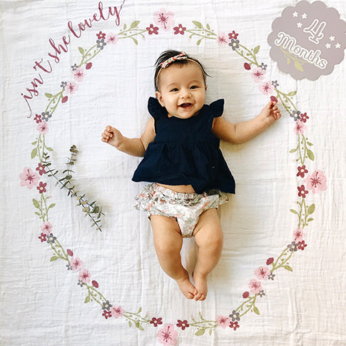 Isn't She Lovely?の答えは、Yes, she is.意外ありえない!お花のフレームがラブリーなおくるみです。
