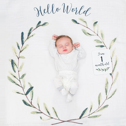 ご出産祝いのギフトにもぴったり。赤ちゃんを上に乗せるだけで、とってもかわいい写真が撮れちゃうおくるみとカードのセット。