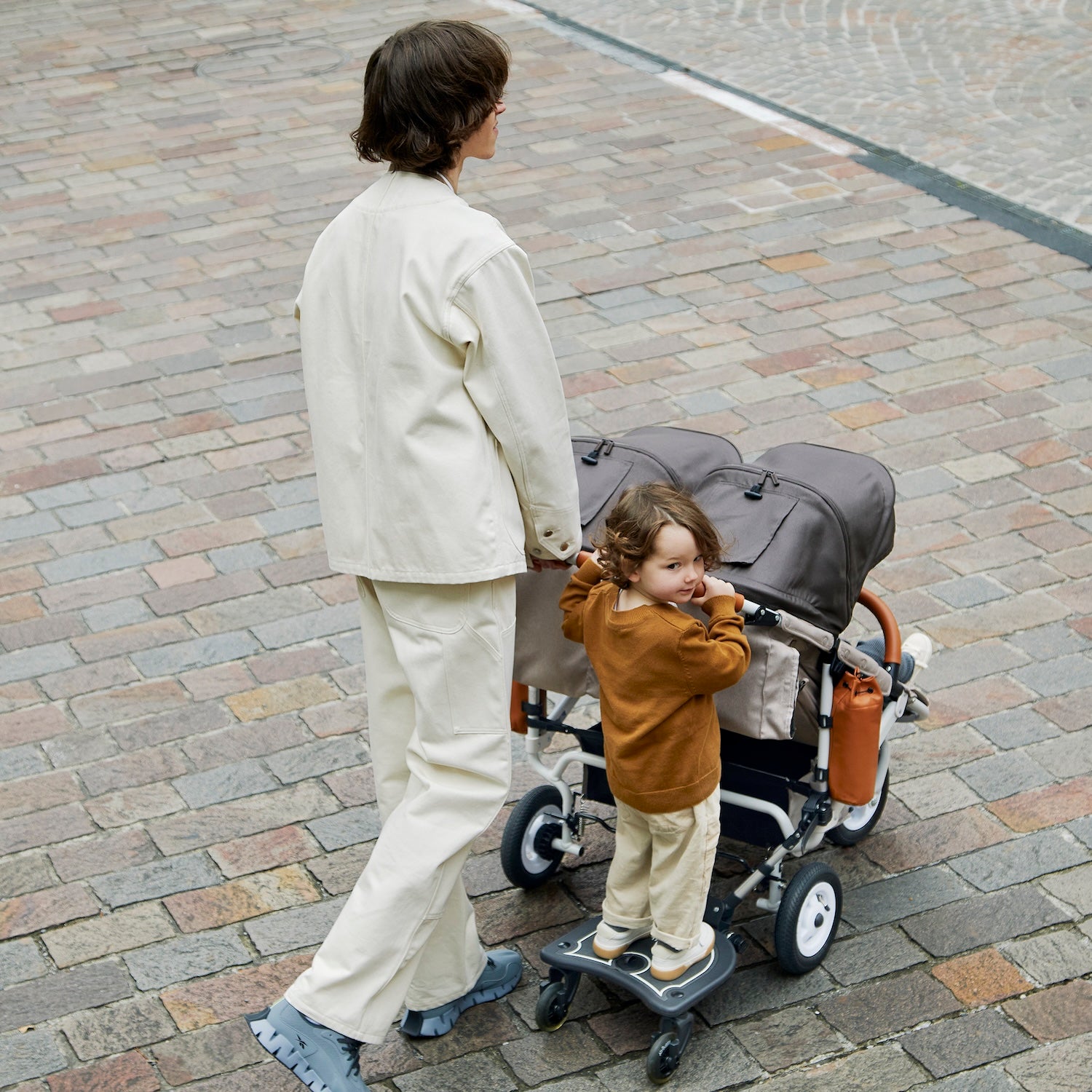 ふたごファミリーがストレスフリーでお出かけできるよう、押しやすさ、乗り心地、使いやすさを追求しました。