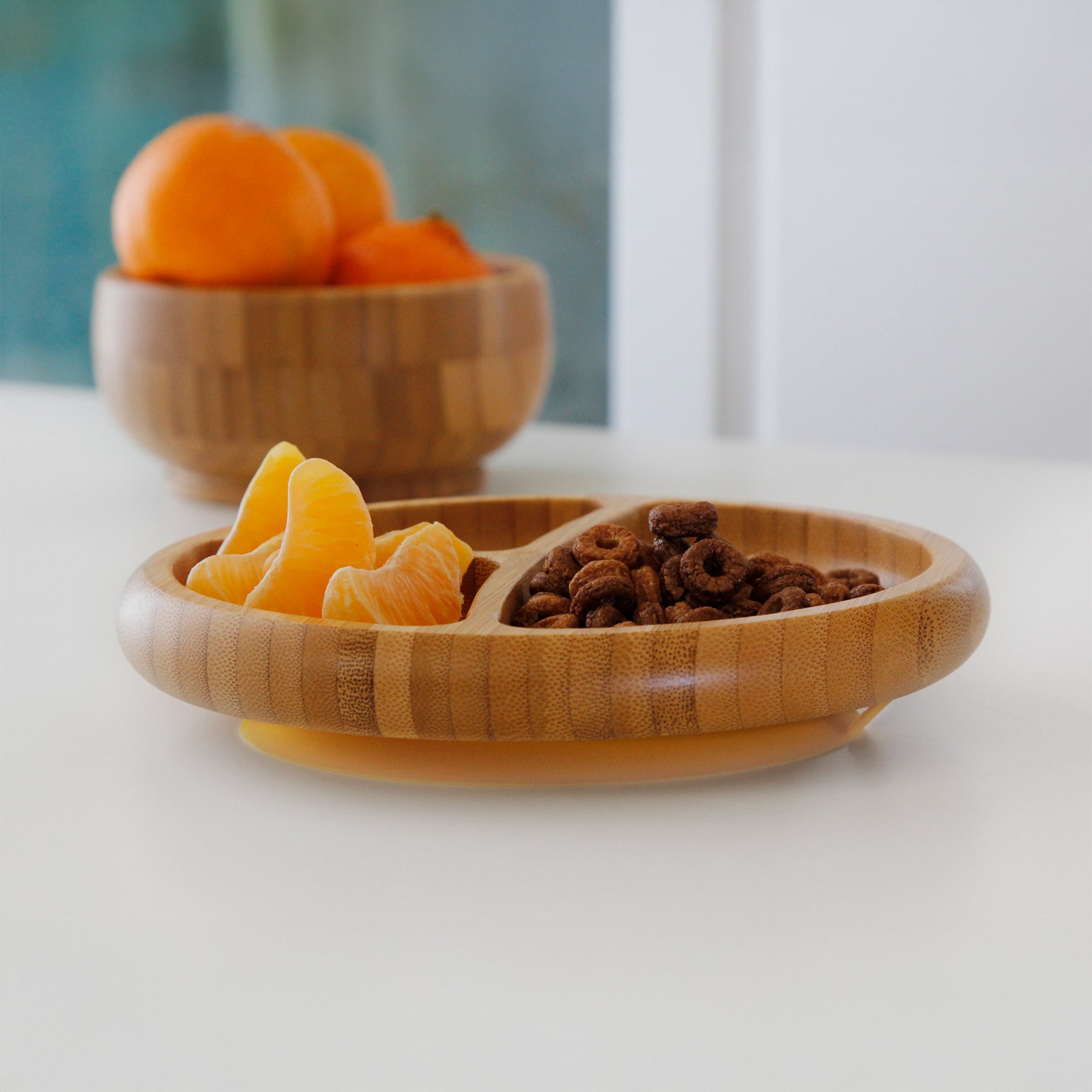 食器の底に付けたシリコーンの吸盤がお皿をしっかりテーブルに固定してくれるので、お皿を投げたりひっくり返したり、手づかみ食べや遊び食べすることが多くなってきたお子様に最適です。
