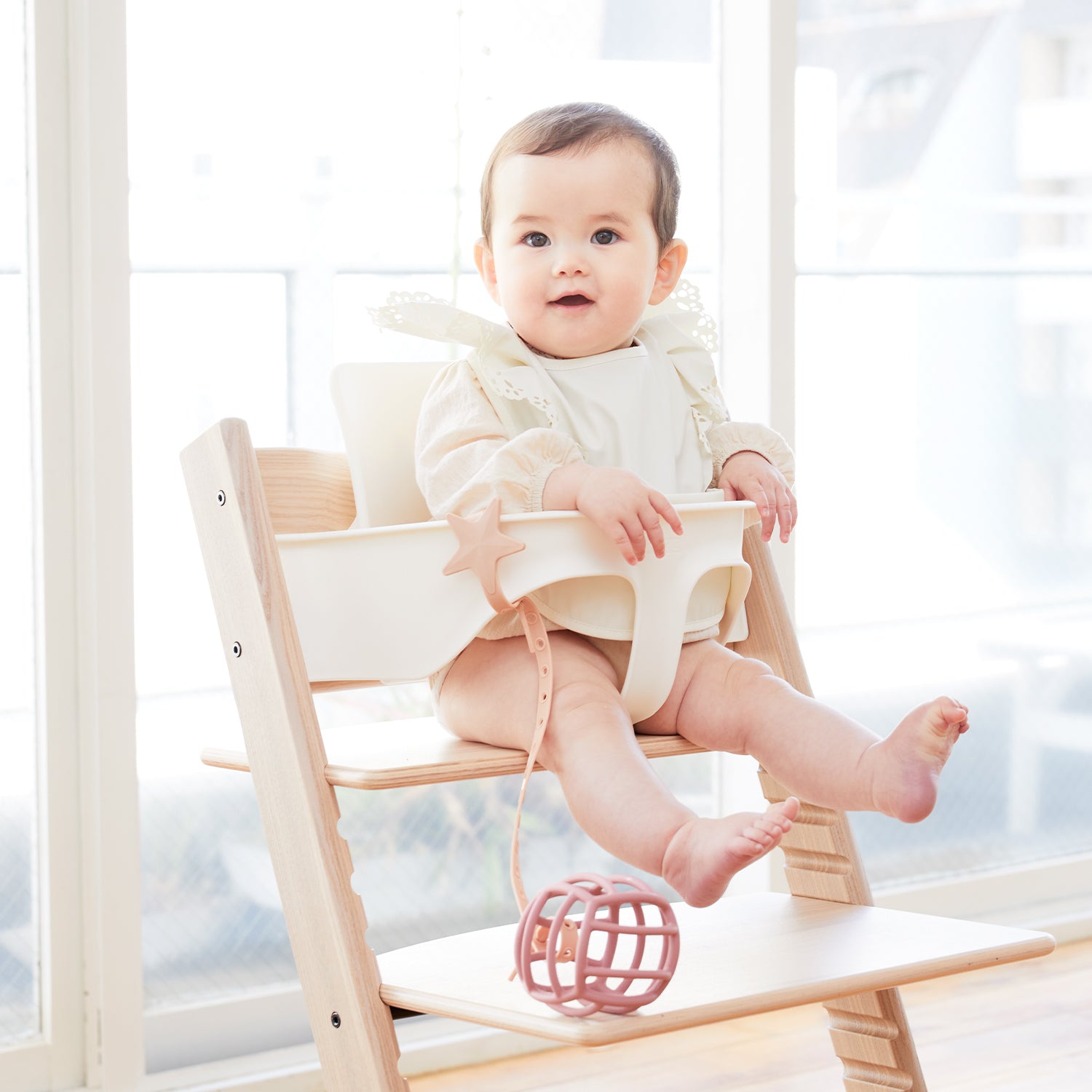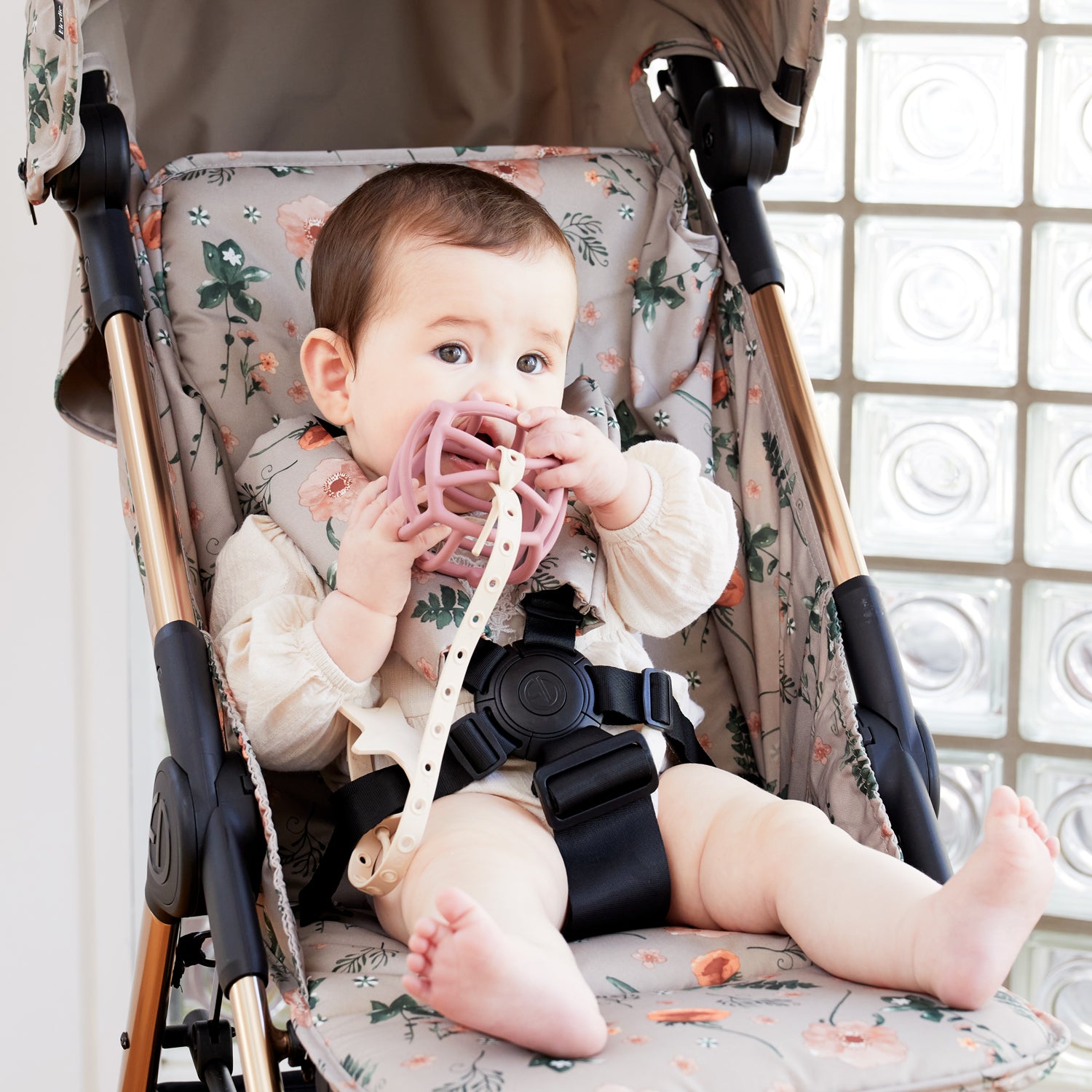 バネタイプのストラップのように、反動がつきすぎて赤ちゃんのお顔や体に当たってしまうこともありません。