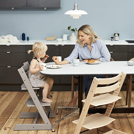 ストッケ トリップ トリップベビーセットに取り付け可能なトレイを使えば、ダイニングテーブル以外のシーンでもストッケ トリップ トラップが活躍します。