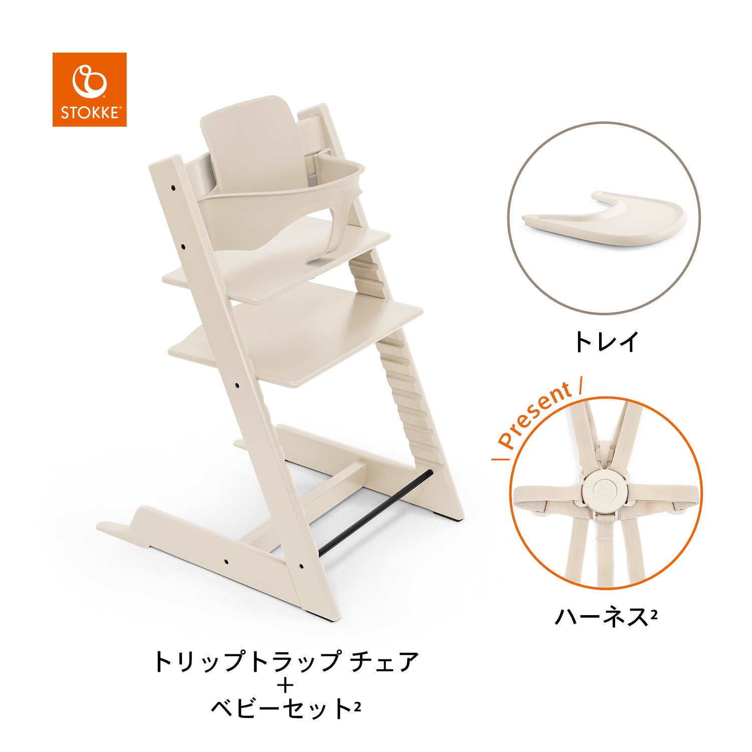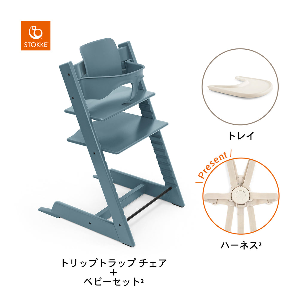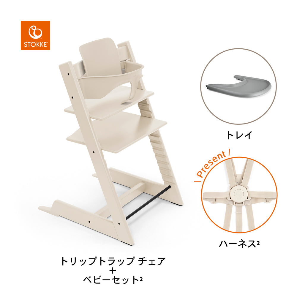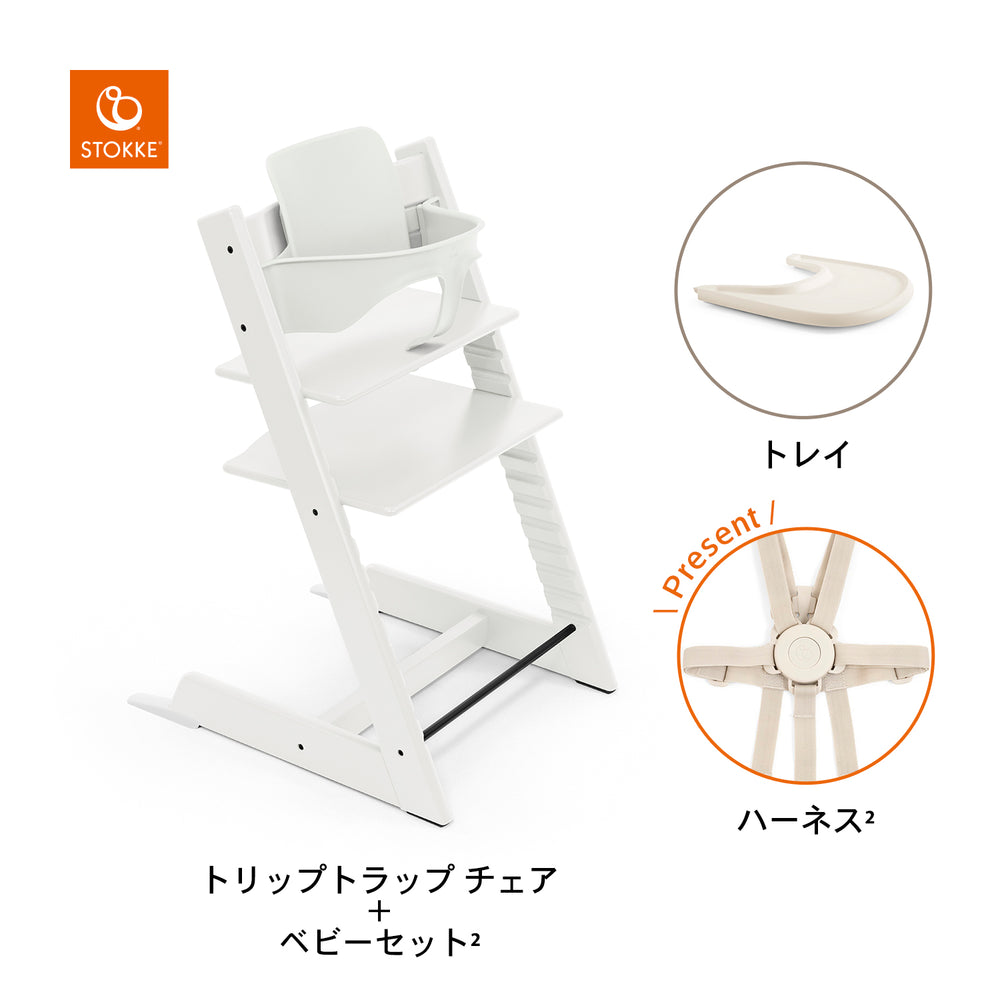 | 付属品 | セット内容 ・トリップトラップチェア ・ベビーセット2 ・トレイ ・ハーネス |